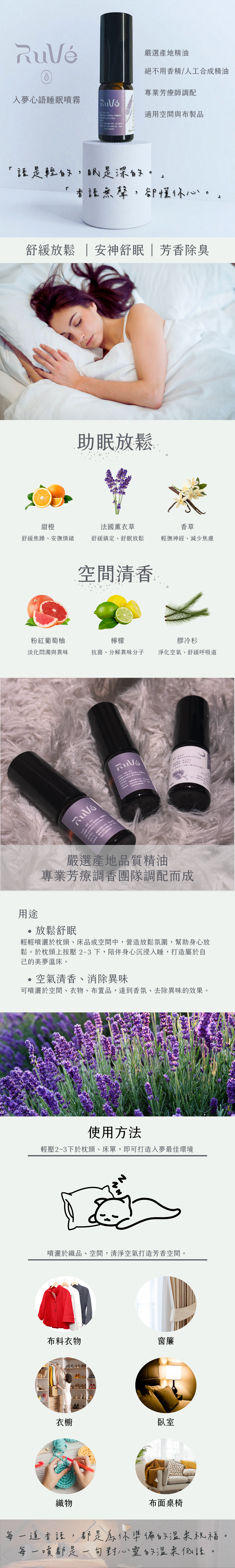 結合法國薰衣草、膠冷杉與果香調香氣,適合營造舒眠放鬆系香氛氛圍,適合日常擴香與空氣感官調整所需。